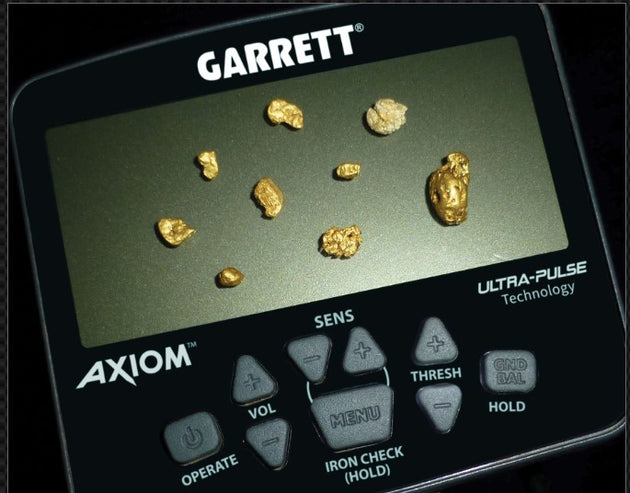 Garrett Axiom Metal Detector with 13"x11" DD-FC Coil, 11"x7" Mono Coil and MS-3 Headphones